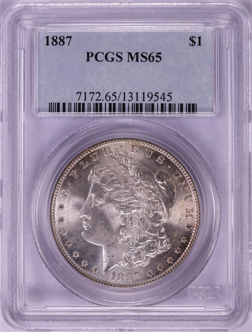 One 1887 $1 Morgan Silver Dollar Coin PCGS MS65. PCGS Graded.