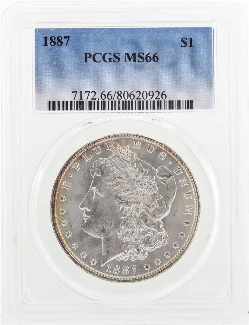 One 1887 $1 Morgan Silver Dollar Coin PCGS MS66. PCGS Graded.
