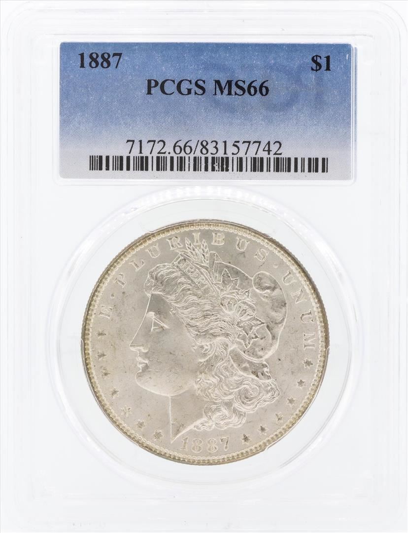 One 1887 $1 Morgan Silver Dollar Coin PCGS MS66. PCGS Graded.