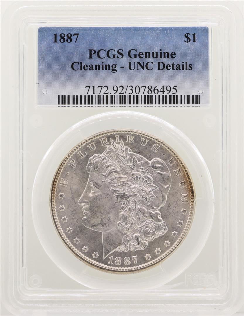 One 1887 $1 Morgan Silver Dollar Coin PCGS Unc Details. PCGS Graded.