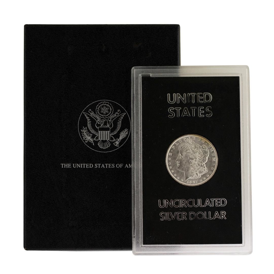 One 1887 $1 Morgan Silver Dollar Coin Uncirculated GSA w/Box.