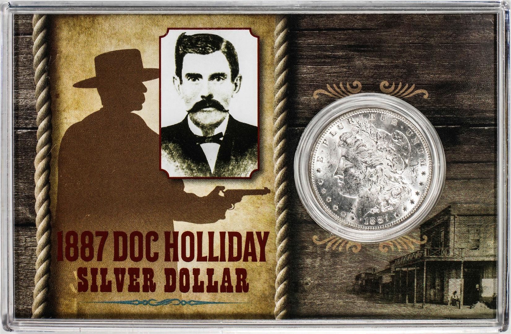 1887 $1 Morgan Silver Dollar Coin with Doc Holiday Commemorative Card