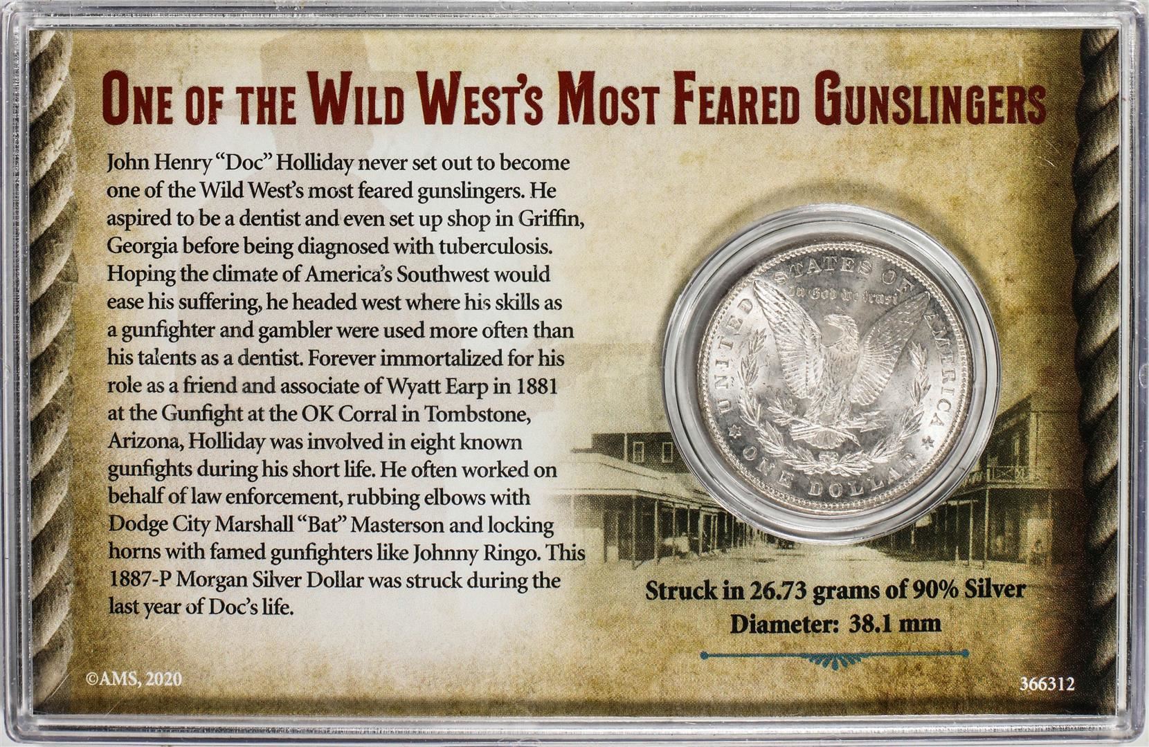 1887 $1 Morgan Silver Dollar Coin with Doc Holiday Commemorative Card