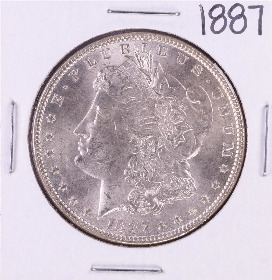 One 1887 $1 Morgan Silver Dollar Coin.