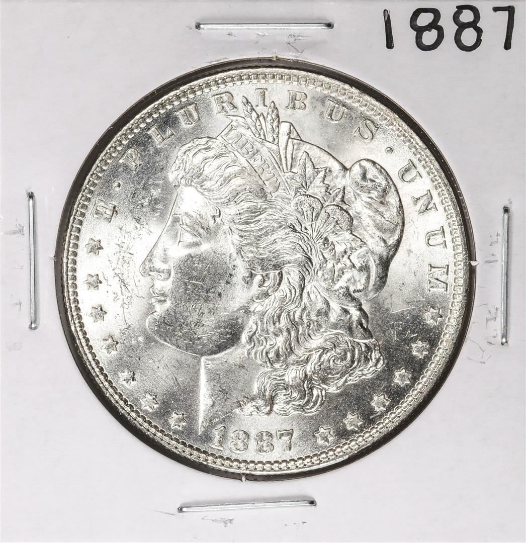One 1887 $1 Morgan Silver Dollar Coin.