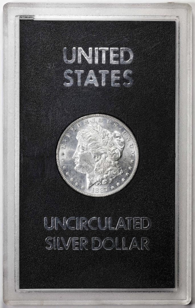One 1887 $1 Morgan Silver Dollar GSA Hoard Uncirculated.