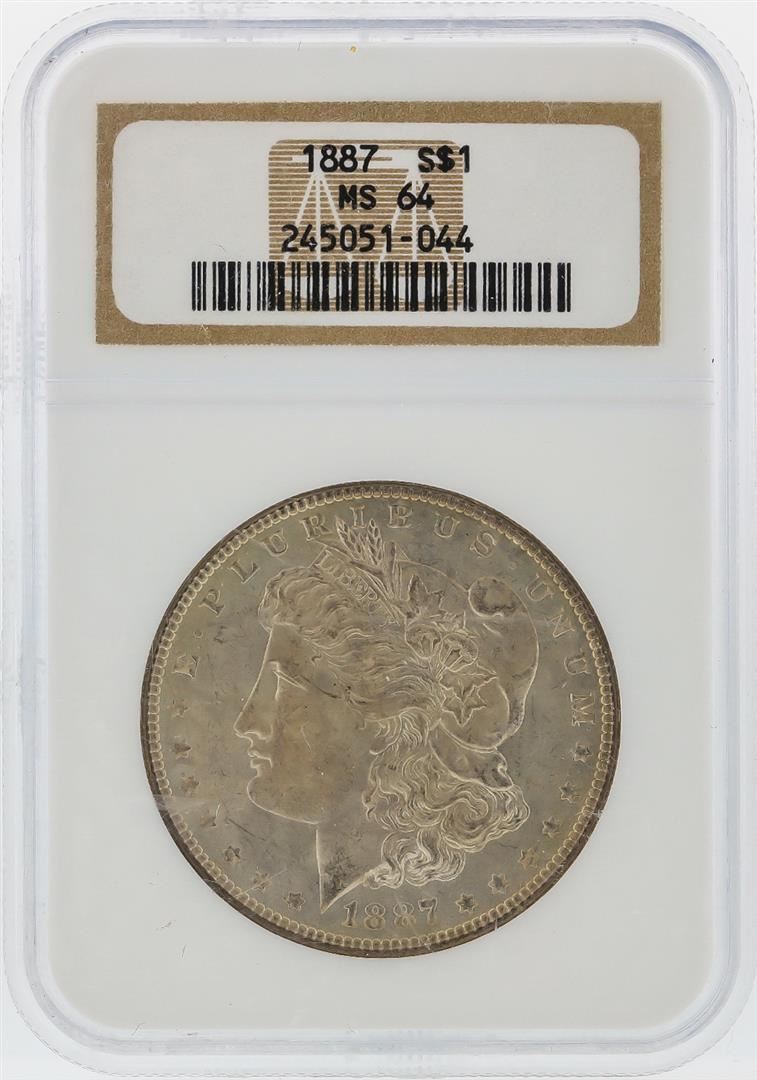 One 1887 $1 Morgan Silver Dollar NGC Graded MS64. NGC Certified.