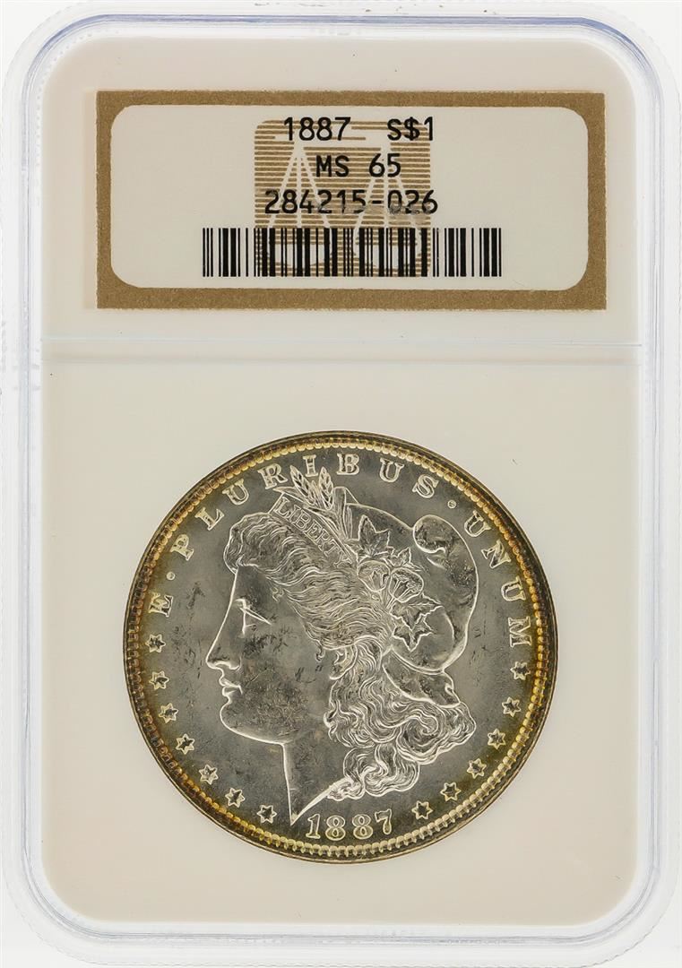 One 1887 $1 Morgan Silver Dollar NGC Graded MS65. NGC Certified.