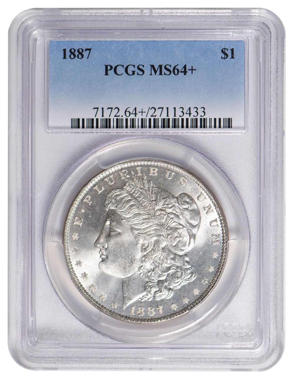 One 1887 $1 Morgan Silver Dollar PCGS MS64+.