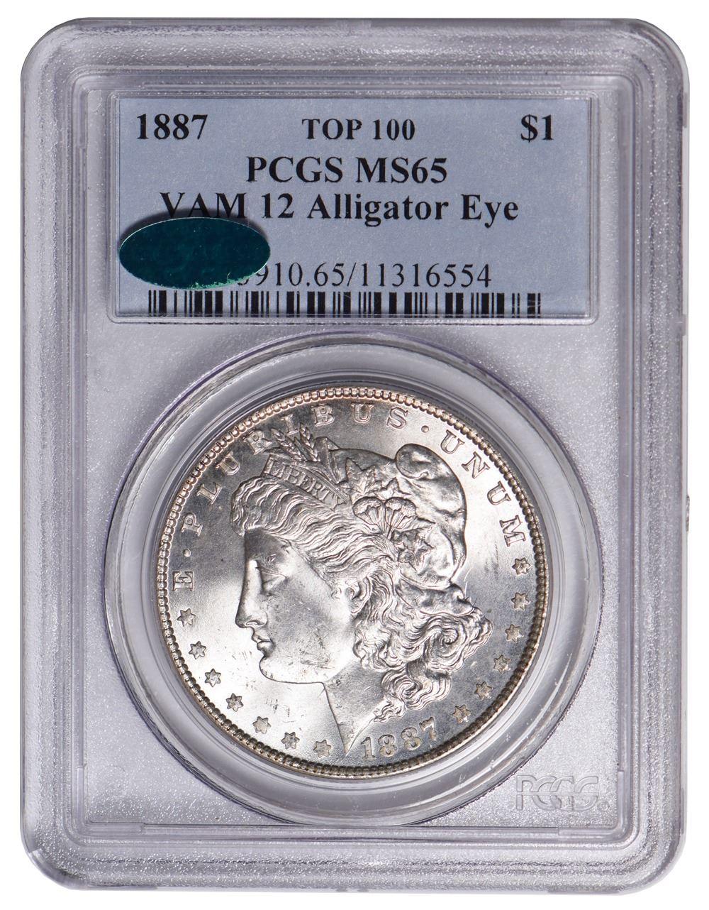 One 1887 $1 Morgan Silver Dollar PCGS MS65 CAC.