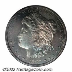 <TABLE cellSpacing=0 cellPadding=0 width="100%" bgColor=#000000 border=0><TBODY><TR><TD width="100%"><TABLE cellSpacing=1 cellPadding=3 width="100%" border=0><TBODY><TR><TD width="100%" bgColor=#79735c><FONT face=arial color=#ffffff size=3><B>Description</B> </FONT></TD></TR><TR><TD width="100%" bgColor=#ffffff><FONT face=arial size=2><B>1887 $1 PR64 NGC.</B></I> Deep violet and cobalt-blue toning leaves only a small window of brilliance on the obverse and, save for a milky swath on the reverse, has surprisingly little effect on the intensity of the underlying mirrors. </FONT></TD></TR></TBODY></TABLE></TD></TR></TBODY></TABLE><BR><A name=PricesRealized></A><TABLE cellSpacing=0 cellPadding=0 width="100%" bgColor=#000000 border=0><TBODY><TR><TD width="100%"><TABLE cellSpacing=1 cellPadding=3 width="100%" border=0><TBODY><TR><TD width="100%" bgColor=#79735c><A name=PR><FONT face=arial color=#ffffff size=3><B>Previous Prices from Heritage Auctions</B> </FONT></A></TD></TR><TR><TD bgColor=#f6f6ed><TABLE cellSpacing=0 cellPadding=0 width="100%" border=1><TBODY><TR><TD align=middle width="33%"><B>Date</B></TD><TD align=middle width="33%"><B>Service</B></TD><TD align=middle width="33%"><B>Price</B></TD></TR><TR bgColor=whitesmoke><TD width="33%"><B>05/27/2001</B></TD><TD width="33%">PCGS</TD><TD width="33%">$1,610.00</TD></TR><TR bgColor=whitesmoke><TD width="33%"><B>07/31/1993</B></TD><TD width="33%">PCGS</TD><TD width="33%">$2,310.00</TD></TR><TR bgColor=whitesmoke><TD width="33%"><B>03/04/1995</B></TD><TD width="33%">PCGS</TD><TD width="33%">$1,540.00</TD></TR><TR bgColor=whitesmoke><TD width="33%"><B>01/11/2003</B></TD><TD width="33%">NGC</TD><TD width="33%">$2,127.50</TD></TR></TBODY></TABLE></TD></TR><TR><TD bgColor=#ffffff><FONT face=arial size=1 ?>PLEASE NOTE: All prices realized reflect the final hammer price PLUS the buyer's premium in auctions that charge a buyer's premium. Each item has a notation at the top of the listing indicating whether that lot included a buyer's premium. Example: A item that sells with a final hammer price of $100 and a 20% buyer's premium will display with a price realized of $120. All information listed is intended to be as accurate as possible, but errors are possible. Please use this guide carefully and inform us of any inaccuracies. </FONT></TD></TR></TBODY></TABLE></TD></TR></TBODY></TABLE><BR><TABLE cellSpacing=0 cellPadding=0 width="100%" bgColor=#000000 border=0><TBODY><TR><TD width="100%"><TABLE cellSpacing=1 cellPadding=3 width="100%" border=0><TBODY><TR><TD width="100%" bgColor=#79735c colSpan=6><FONT face=arial color=#ffffff size=3><B>Price Guide*</B> </FONT></TD></TR><TR bgColor=#f6f6ed><TD align=middle><B>Grade</B> </TD><TD align=middle><B>Coin World<BR>(Trends)</B> </TD><TD align=middle><B>Numismedia<BR>Retail</B> </TD><TD align=middle><B>Numismedia<BR>Wholesale</B> </TD><TD align=middle><B>Coin<BR>Universe</B> </TD><TD align=middle><B>Heritage<BR>Value Index</B> </TD></TR><TR bgColor=#ffffff><TD align=middle>63</TD><TD align=right>---</TD><TD align=right>---</TD><TD align=right>$1,425.00</TD><TD align=right>$2,150.00</TD><TD align=right>$1,320.00</TD></TR><TR style="FONT-WEIGHT: bold" bgColor=#cccfdd><TD align=middle>64</TD><TD align=right>---</TD><TD align=right>---</TD><TD align=right>$2,300.00</TD><TD align=right>$3,450.00</TD><TD align=right>$2,180.00</TD></TR><TR bgColor=#ffffff><TD align=middle>65</TD><TD align=right>---</TD><TD align=right>---</TD><TD align=right>$4,150.00</TD><TD align=right>$6,850.00</TD><TD align=right>$4,053.33</TD></TR><TR bgColor=#ffffff><TD colSpan=6><FONT size=1>*All information listed is intended to be as accurate as possible, but errors are possible. No item may be returned or refused based on this information which is provided as a service to our customers. You should contact each pricing source directly to determine the accuracy of this information. </FONT></TD></TR></TBODY></TABLE></TD></TR></TBODY></TABLE><BR><TABLE cellSpacing=0 cellPadding=0 width="100%" bgColor=#000000 border=0><TBODY><TR><TD width="100%"><TABLE cellSpacing=1 cellPadding=3 width="100%" border=0><TBODY><TR><TD width="100%" bgColor=#79735c><FONT face=arial color=#ffffff size=3><B>Population Guide</B> </FONT></TD></TR><TR bgColor=#ffffff><TD align=middle><!-- Begin Output of Population Grid--><TABLE cellSpacing=0 cellPadding=0 width="100%" border=0><TBODY><TR><TD vAlign=center><TABLE cellSpacing=0 width="100%" border=1 cellsadding="3"><TBODY><TR><TD vAlign=center><TABLE cellSpacing=0 cellPadding=3 width="100%" border=1><TBODY><TR><TD vAlign=center align=middle bgColor=#f0f1e8 colSpan=2 <CENTER><FONT face=Arial size=2><B>PCGS Pop </B></FONT><CENTER></CENTER></TD><TD vAlign=center align=middle bgColor=#f0f1e8 colSpan=2><CENTER><FONT face=Arial size=2><B>NGC Pop</B></CENTER></FONT></TD></TR><TR><TD vAlign=center><FONT face=Arial size=2>(64)</FONT> </TD><TD vAlign=center align=right><FONT face=Arial size=2>51</FONT> </TD><TD vAlign=center><FONT face=Arial size=2>(64)</FONT> </TD><TD vAlign=center align=right><FONT face=Arial size=2>41</FONT> </TD></TR><TR><TD vAlign=center><FONT face=Arial size=2>(>64)</FONT> </TD><TD vAlign=center align=right><FONT face=Arial size=2>46</FONT> </TD><TD vAlign=center><FONT face=Arial size=2>(>64)</FONT> </TD><TD vAlign=center align=right><FONT face=Arial size=2>67</FONT> </TD></TR></TBODY></TABLE></TD></TR></TBODY></TABLE></TD></TR></TBODY></TABLE><!-- End Output of Population Grid--> Important notice: Heritage usually auctions material at the rate of 200-250 lots per hour. On some occasions eBay Live bid software or the Internet may not be able to keep up with the pace of the auction. We recommend placing a realistic absentee bid now as insurance to avoid disappointment. Occasionally the auctioneer may eliminate or reject an eBay Live bid, and the auctioneer may also reopen a lot after the close of the eBay live bidding (usually because we missed an audience bid), and may reject your bid even if it shows you 