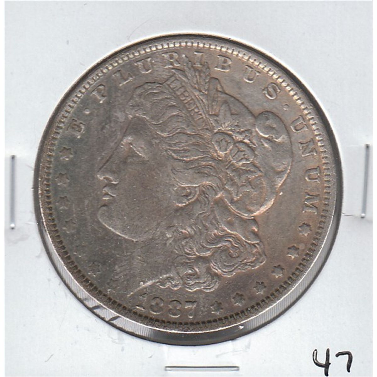 1887 $1 SILVER MORGAN SPECTACULAR TONING GREEN/BLUE
