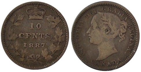 1887 10 Cents, Abt Fine.