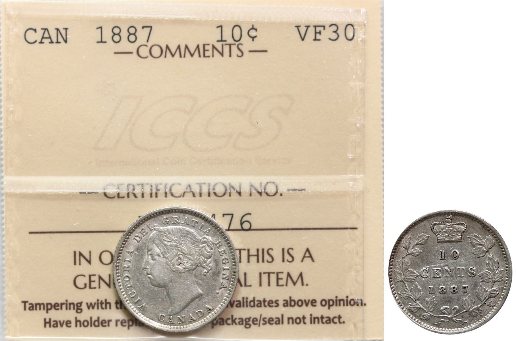 The cataloguer has taken every reasonable measure to ensure that all of the lots in this sale are as described and genuine. All raw coins and banknotes have been graded by the cataloger or the auction house which represent our best professional opinion. To grade coins and banknotes, we use Canadian grading standards, 42 years of experience and good conscience. However, grading is a subjective description in the opinion of the cataloger or the auction house. Among experts there are often differences of opinion on the grading and the eye appeal of a coin. The strike and the state of preservation are often debated. The Canadian Numismatic Company acts as an agent between consignors and buyers. The Canadian Numismatic Company does not guarantee that any coin or banknote cataloged will meet the standards, or the grade, of any third party grading companies. No warranty, whether impressed or implied. Items are as is, no warranty given. We cannot accept responsibility and waive all liability resulting in financial losses, and or incidentals accruing from the sale of any items, nor can we guarantee that items graded by third party services will grade the same if submitted to a different grading service or re-submitted to the same company. Statements by The Canadian Numismatic Company regarding the condition, the eye appeal, the strike and the population of items are for guidance only. All lots offered are sold "AS IS". Title to all lots remains with the auction house until paid for in full by the purchaser. But they are held at the risk of the purchaser once the time of the sale.