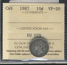 1887 10¢ ICCS VF20. Nice key issue.