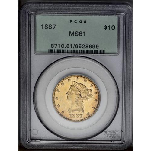 1887 $10 MS61 PCGS. A lustrous example with no trace o