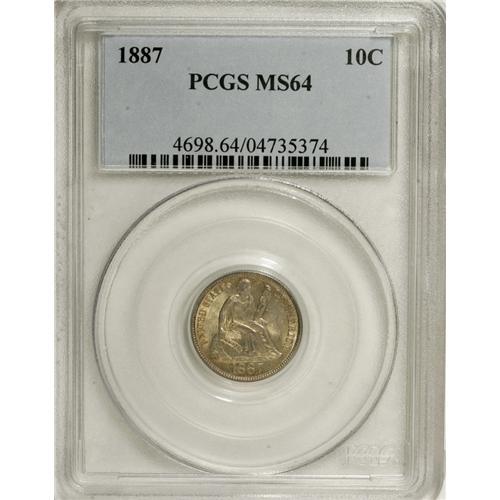 1887 10C MS64 PCGS. Pleasing satiny luster radiates fr