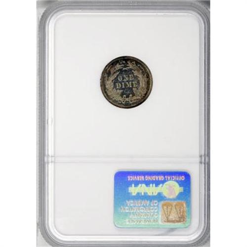 <B>1887 10C PR66 NGC.</B></I> The obverse of this outstanding Premium Gem is predominantly green-gold with a measure of sapphire over the inner fields. The decisively struck reverse displays mainly champagne shades with delicate orange and powder-blue accents. Census: 26 in 66, 7 finer (10/07).<BR><BR><B>Coin Engraver:</B> Christian Gobrecht<BR><BR><b>Shipping:</b> Coins & Currency (<a target="_blank" href="http://www.heritageauctions.com/common/shipping.php">view shipping information</a>)