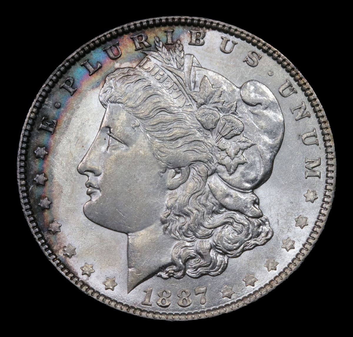 1887/18-7-p Rainbow Toned vam 11 Morgan Dollar $1 Grades Select+ Unc.
