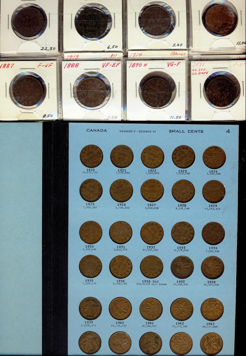 1887-1915 1¢, 1920-1976 1¢ & 1894 1¢ EF, 1937, 1938, 1944 & 1945 1¢ UNC along with PEI 1871 1¢(2) bo
