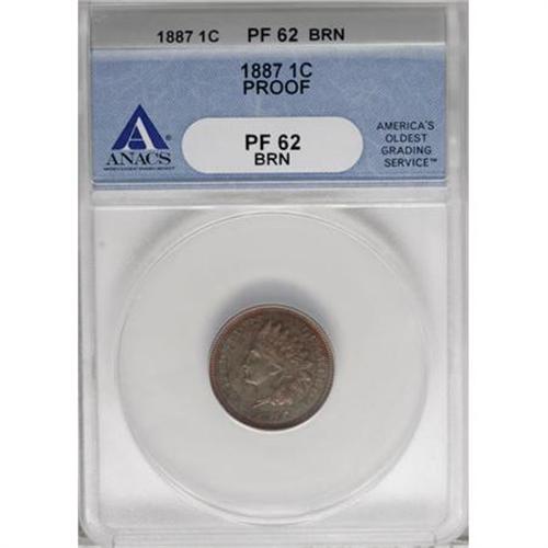 <B>1887 1C PR62 Brown ANACS.</B></I> NGC Census: (3/130). PCGS Population (2/131). Mintage: 2,960. Numismedia Wsl. Price for NGC/PCGS coin in PR62: $75. (#2348)<BR><BR><B>Coin Engraver:</B> James B. Longacre<BR><BR><b>Shipping:</b> Coins & Currency (<a target="_blank" href="http://www.heritageauctions.com/common/shipping.php">view shipping information</a>)