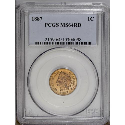 <B>1887<1C> MS64 Red PCGS.</B></I> Lustrous surfaces display shades of orange and yellow-gold patina, and adequately struck design elements. A few light flecks are noted on each side. Population: 75 in 64, 66 finer (3/06). <BR><BR><B>Important notice:</B> Heritage usually auctions material at the rate of 200-250 lots per hour. On some occasions eBay Live bid software or the Internet may not be able to keep up with the pace of the auction. We recommend placing a realistic absentee bid now as insurance to avoid disappointment. Occasionally the auctioneer may eliminate or reject an eBay Live bid, and the auctioneer may also reopen a lot after the close of the eBay live bidding (usually because we missed an audience bid), and may reject your bid even if it shows you as the winning bidder. By bidding via eBay Live, you agree that Heritage may award the lot to another bidder at its sole discretion under the circumstances described above or any other reasonable circumstances. Since eBay bids are not shown to us until we open the lot on the floor, we treat those bids just like floor bids. In most cases the floor responds before the eBay bid is presented to us, due to Internet lag time, so for consistency we have made it a policy that floor bids are always considered first over tie eBay live bids. Also please note that all Heritage lots purchased through eBay Live carry a 20% Buyer's Premium. Please make sure you read the Terms and Conditions before you bid. This lot is being auctioned in conjunction with a live floor auction by Heritage Galleries & Auctioneers. All final auction and invoice information will be supplied by Heritage Galleries & Auctioneers, and all other information should be considered preliminary. Lot:405 <BR><BR><B>Winning Notification and Billing:</B> After the FINAL session in this auction is complete, Heritage will send e-mail and snail mail invoices. This process normally takes several days. All final auction and invoice information will be supplied by Heritage Galleries & Auctioneers, and all other information should be considered preliminary. <BR><BR>This auction will be conducted on a live auction floor and over the Internet through eBay Live. If you choose to place an absentee bid, please take a moment to <font color='#0000ff'><u><a href='http://pages.ebay.com/liveauctions/help/before/laabsentee.html'>learn how eBay Live absentee bidding works</a></u></font><font color='#000000'>