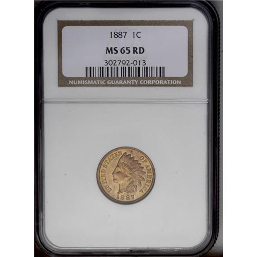 1887 1C MS65 Red NGC. This lustrous fire-red Gem is cr 1887[1C] MS65 Red NGC.