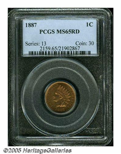 <B>1887<1C> MS65 Red PCGS.</B></I> Crisply struck for a business strike, this satiny Gem has gorgeous and consistent peach-red color. Essentially unabraded, and irrefutably attractive. Population: 52 in 65, 15 finer (3/05).