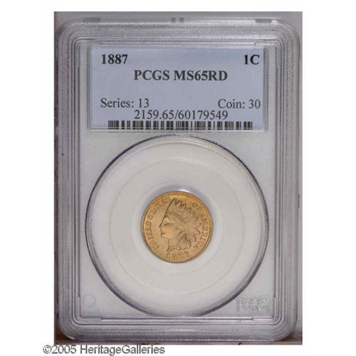 <B>1887<1C> MS65 Red PCGS.</B></I> Dazzling luster and undisturbed fields confirm the exemplary quality of this honey-gold Gem. A trace of contact on the lower cheek prevents an even higher grade. Population: 51 in 65, 15 finer (10/05).