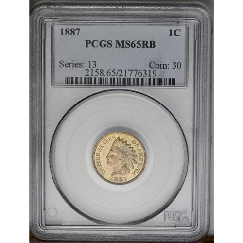<B>1887<1C> MS65 Red and Brown PCGS.</B></I> The honey-gold surfaces have slightly mellowed color in the centers. Well struck except for the tips of the upper headdress feathers. There are just a couple of minor carbon flecks on each side.