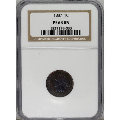 <B>1887 1C PR63 Brown NGC.</B></I> NGC Census: (18/109). PCGS Population (23/101). Mintage: 2,960. Numismedia Wsl. Price: $110. (#2348)<BR><BR><b>Shipping:</b> Coins & Currency (<a target="_blank" href="http://www.heritageauctions.com/common/shipping.php">view shipping information</a>)