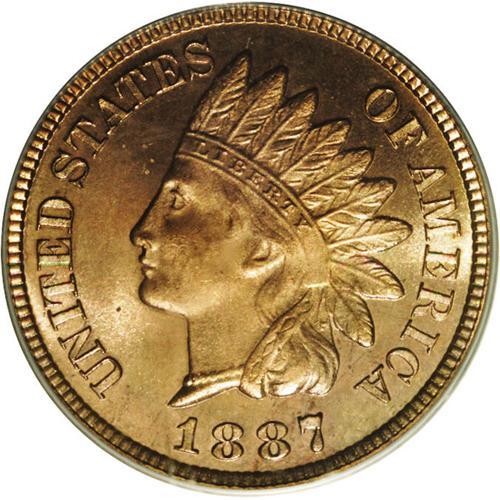 <B>1887<1C> PR65 Red PCGS.</B></I> Exceptional deep cherry-red color covers both sides with interesting accents of lilac in the fields. Bright, reflective fields and fully struck throughout. Population: 10 in 65, 2 finer (4/06).