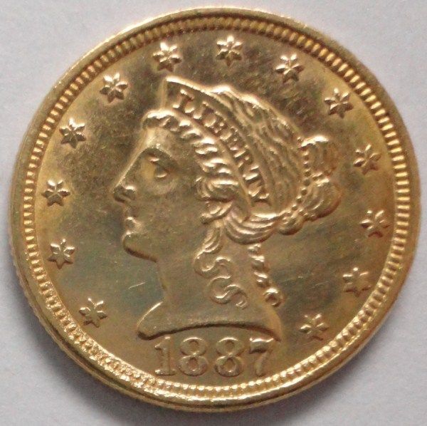 1887 $2.50 SCARCE LOW MINTAGE (6160M.) VERY CH BU 64++ SUPERB LUSTER EYE APPEAL!