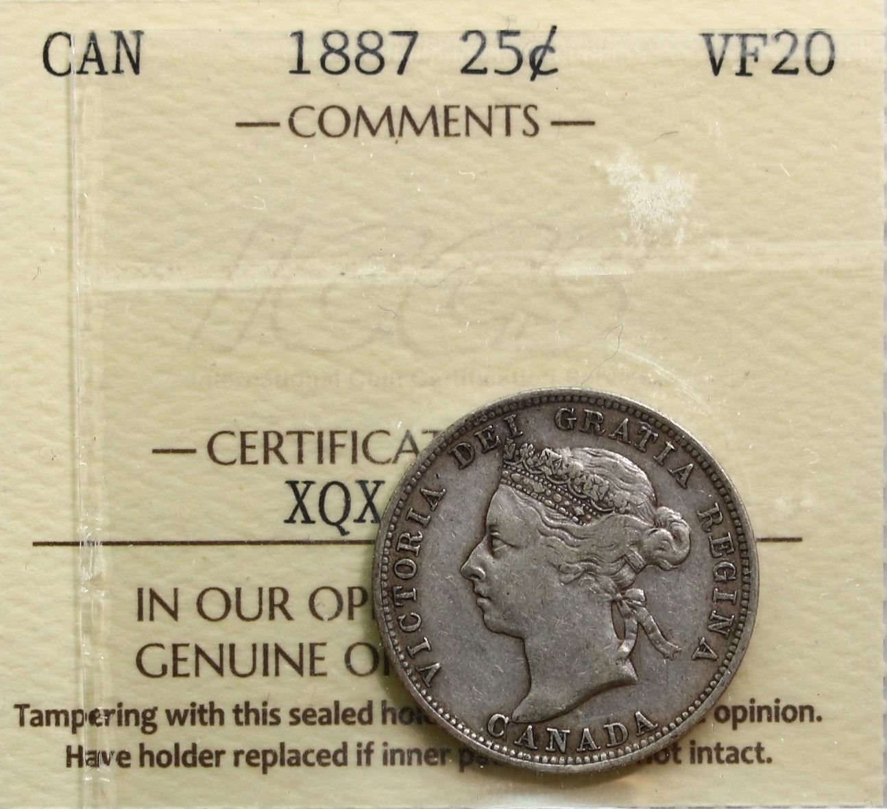 1887 25¢ ICCS Very Fine-20. Key date.