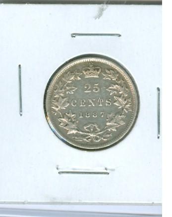 1887 25¢. Well struck example in F15 grade. Shows light mark in hairline.