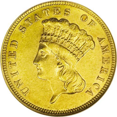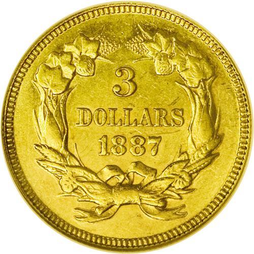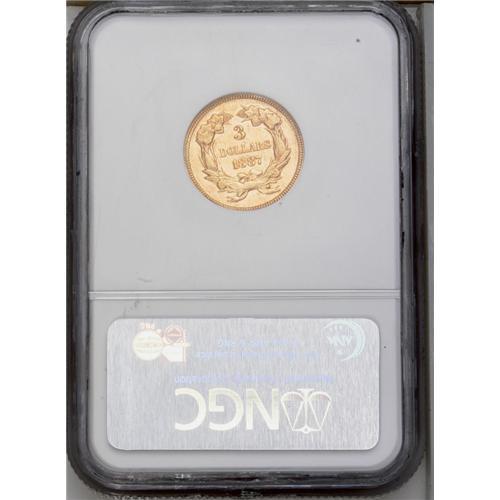 1887 $3 AU58 NGC. This slider has ample bright luster,
