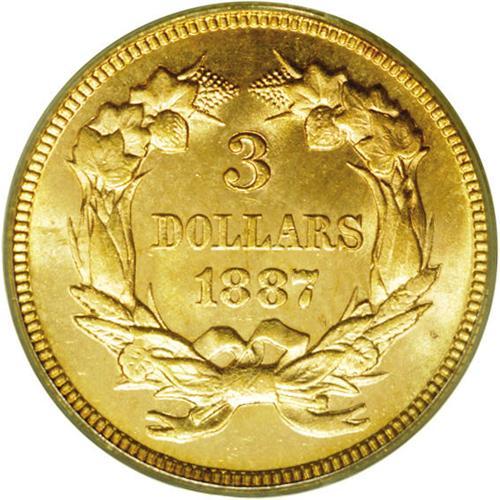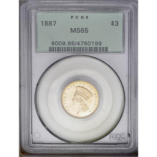 1887 $3 MS65 PCGS. The 1887, of which only 6,000 piece