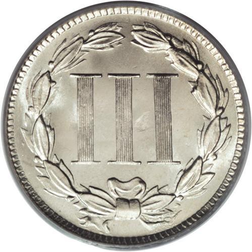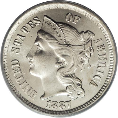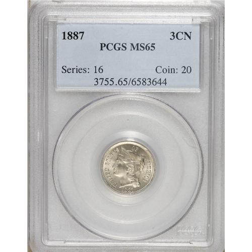 1887 3CN MS65 PCGS. One of 5,001 business strikes, the