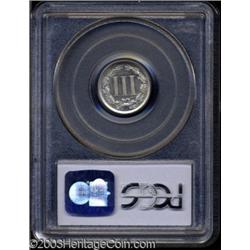 <table><tr><td><TABLE cellSpacing=0 cellPadding=0 width="100%" bgColor=#000000 border=0><TBODY> <TR><TD width="100%"><TABLE cellSpacing=1 cellPadding=3 width="100%" border=0><TBODY><TR><TD width="100%" bgColor=#79735c><FONT face=arial color=#ffffff size=3><B>Description</B> </FONT></TD></TR><TR><TD width="100%" bgColor=#ffffff><FONT face=arial size=2><B>1887 3CN PR65 Cameo PCGS.</B></I> A well struck representative with highly reflective fields and nearly mark-free surfaces. The obverse is untoned and free of any striking irregularities, while the reverse displays a light coating of milky patina, a number of small planchet flaws (as struck), and a lengthy vertical die striation (as struck) just left of the large Roman numeral III. Population: 2 in 65, 4 finer (9/03). </FONT></TD></TR></TBODY></TABLE></TD></TR></TBODY></TABLE><BR><A name=PricesRealized></A><TABLE cellSpacing=0 cellPadding=0 width="100%" bgColor=#000000 border=0><TBODY><TR><TD width="100%"><TABLE cellSpacing=1 cellPadding=3 width="100%" border=0><TBODY><TR><TD width="100%" bgColor=#79735c><A name=PR><FONT face=arial color=#ffffff size=3><B>Previous Prices from Heritage Auctions</B> </FONT></A></TD></TR><TR><TD bgColor=#f6f6ed><TABLE cellSpacing=0 cellPadding=0 width="100%" border=1><TBODY><TR><TD align=middle width="33%"><B>Date</B></TD><TD align=middle width="33%"><B>Service</B></TD><TD align=middle width="33%"><B>Price</B></TD></TR><TR bgColor=whitesmoke><TD width="33%"><B>09/28/2002</B></TD><TD width="33%">PCGS</TD><TD width="33%">$851.00</TD></TR><TR bgColor=whitesmoke><TD width="33%"><B>06/10/2002</B></TD><TD width="33%">PCGS</TD><TD width="33%">$891.25</TD></TR></TBODY></TABLE></TD></TR><TR><TD bgColor=#ffffff><FONT face=arial size=1 ?>PLEASE NOTE: All prices realized reflect the final hammer price PLUS the buyer's premium in auctions that charge a buyer's premium. Each item has a notation at the top of the listing indicating whether that lot included a buyer's premium. Example: A item that sells with a final hammer price of $100 and a 20% buyer's premium will display with a price realized of $120. All information listed is intended to be as accurate as possible, but errors are possible. Please use this guide carefully and inform us of any inaccuracies. </FONT></TD></TR></TBODY></TABLE></TD></TR></TBODY></TABLE><BR><TABLE cellSpacing=0 cellPadding=0 width="100%" bgColor=#000000 border=0><TBODY><TR><TD width="100%"><TABLE cellSpacing=1 cellPadding=3 width="100%" border=0><TBODY><TR><TD width="100%" bgColor=#79735c colSpan=6><FONT face=arial color=#ffffff size=3><B>Price Guide*</B> </FONT></TD></TR><TR bgColor=#f6f6ed><TD align=middle><B>Grade</B> </TD><TD align=middle><B>Coin World<BR>(Trends)</B> </TD><TD align=middle><B>Numismedia<BR>Retail</B> </TD><TD align=middle><B>Numismedia<BR>Wholesale</B> </TD><TD align=middle><B>Coin<BR>Universe</B> </TD><TD align=middle><B>Heritage<BR>Value Index</B> </TD></TR><TR bgColor=#ffffff><TD align=middle>64</TD><TD align=right>---</TD><TD align=right>---</TD><TD align=right>---</TD><TD align=right>---</TD><TD align=right>$261.00</TD></TR><TR style="FONT-WEIGHT: bold" bgColor=#cccfdd><TD align=middle>65</TD><TD align=right>---</TD><TD align=right>---</TD><TD align=right>---</TD><TD align=right>---</TD><TD align=right>$785.50</TD></TR><TR bgColor=#ffffff><TD align=middle>66</TD><TD align=right>---</TD><TD align=right>---</TD><TD align=right>---</TD><TD align=right>---</TD><TD align=right>---</TD></TR><TR bgColor=#ffffff><TD colSpan=6><FONT size=1>*All information listed is intended to be as accurate as possible, but errors are possible. No item may be returned or refused based on this information which is provided as a service to our customers. You should contact each pricing source directly to determine the accuracy of this information. </FONT></TD></TR></TBODY></TABLE></TD></TR></TBODY></TABLE><BR><TABLE cellSpacing=0 cellPadding=0 width="100%" bgColor=#000000 border=0><TBODY><TR><TD width="100%"><TABLE cellSpacing=1 cellPadding=3 width="100%" border=0><TBODY><TR><TD width="100%" bgColor=#79735c><FONT face=arial color=#ffffff size=3><B>Population Guide</B> </FONT></TD></TR><TR bgColor=#ffffff><TD align=middle><!-- Begin Output of Population Grid--><TABLE cellSpacing=0 cellPadding=0 width="100%" border=0><TBODY><TR><TD vAlign=center><TABLE cellSpacing=0 width="100%" border=1 cellsadding="3"><TBODY><TR><TD vAlign=center><TABLE cellSpacing=0 cellPadding=3 width="100%" border=1><TBODY><TR><TD vAlign=center align=middle bgColor=#f0f1e8 colSpan=2 <CENTER><FONT face=Arial size=2><B>PCGS Pop </B></FONT><CENTER></CENTER></TD><TD vAlign=center align=middle bgColor=#f0f1e8 colSpan=2><CENTER><FONT face=Arial size=2><B>NGC Pop</B></CENTER></FONT></TD></TR><TR><TD vAlign=center><FONT face=Arial size=2>(65)</FONT> </TD><TD vAlign=center align=right><FONT face=Arial size=2>3</FONT> </TD><TD vAlign=center><FONT face=Arial size=2>(65)</FONT> </TD><TD vAlign=center align=right><FONT face=Arial size=2>0</FONT> </TD></TR><TR><TD vAlign=center><FONT face=Arial size=2>(>65)</FONT> </TD><TD vAlign=center align=right><FONT face=Arial size=2>5</FONT> </TD><TD vAlign=center><FONT face=Arial size=2>(>65)</FONT> </TD><TD vAlign=center align=right><FONT face=Arial size=2>0</FONT> </TD></TR></TBODY></TABLE></TD></TR></TBODY></TABLE></TD></TR></TBODY></TABLE><!-- End Output of Population Grid--></TD></TR></TBODY></TABLE></TD></TR></TBODY></TABLE><BR><TABLE cellSpacing=0 cellPadding=0 width="100%" bgColor=#000000 border=0><TBODY><TR> Important notice: Heritage usually auctions material at the rate of 200-250 lots per hour. On some occasions eBay Live bid software or the Internet may not be able to keep up with the pace of the auction. We recommend placing a realistic absentee bid now as insurance to avoid disappointment. Occasionally the auctioneer may eliminate or reject an eBay Live bid, and the auctioneer may also reopen a lot after the close of the eBay live bidding (usually because we missed an audience bid)