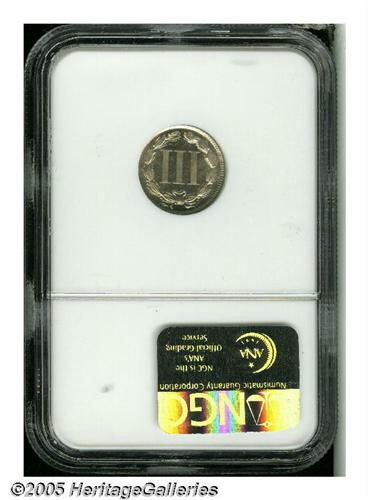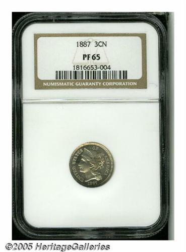 <B>1887<3CN> PR65 NGC.</B></I> Glassy proof surfaces reveal just some freckles of light gray patina, and are virtually unmarked. The design features are well struck throughout. Population: 79 in 65, 24 finer (5/05).