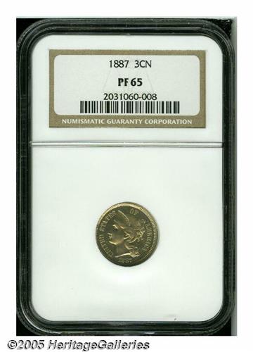 1887 3CN PR65 NGC. The low mintage (5,000 pieces)