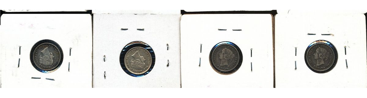 1887 5¢, 1888, 1889 & 1890H all Fine to VF. A nice lot of 4 coins all in 2x2's.