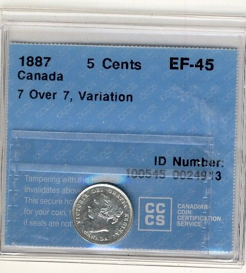 1887 5¢ 7 over 7 CCCS EF45. Interesting variation.