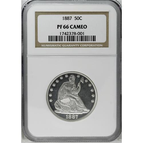 1887 50C PR66 Cameo NGC. Untoned overall, this smooth, 1887