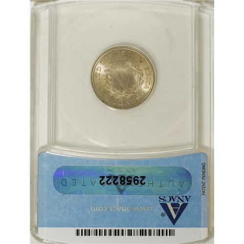 <B>1887 5C MS64 ANACS.</B></I> NGC Census: (129/84). PCGS Population (142/85). Mintage: 15,263,652. Numismedia Wsl. Price: $260. (#3848)<BR><BR><b>Shipping:</b> Coins & Currency (<a target="_blank" href="http://www.heritageauctions.com/common/shipping.php">view shipping information</a>)