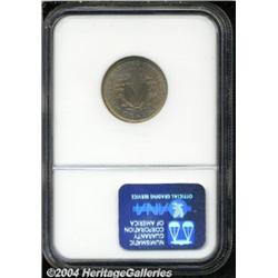 <table><tr><td><table><tr><td>1887 5C MS64 S NGC. Beautifully toned in waves of peach, gold, and sky-blue colors. This lustrous and well preserved near-Gem is sharply struck and decidedly attractive. As of (3/04), only two 1887 business strikes have garnered a star designation from NGC. <BR><BR><B>Important notice:</B> Heritage usually auctions material at the rate of 200-250 lots per hour. On some occasions eBay Live bid software or the Internet may not be able to keep up with the pace of the auction. We recommend placing a realistic absentee bid now as insurance to avoid disappointment. Occasionally the auctioneer may eliminate or reject an eBay Live bid, and the auctioneer may also reopen a lot after the close of the eBay live bidding (usually because we missed an audience bid), and may reject your bid even if it shows you as the winning bidder. By bidding via eBay Live, you agree that Heritage may award the lot to another bidder at its sole discretion under the circumstances described above or any other reasonable circumstances. Since eBay bids are not shown to us until we open the lot on the floor, we treat those bids just like floor bids. In most cases the floor responds before the eBay bid is presented to us, due to Internet lag time, so for consistency we have made it a policy that floor bids are always considered first over tie eBay live bids. Also please note that all Heritage lots purchased through eBay Live carry a 20% Buyer's Premium. Please make sure you read the Terms and Conditions before you bid. <BR><BR><B>IMPORTANT ANNOUNCEMENT ABOUT RESERVES:</B> Heritage now divulges all reserves on its web site 7 days before every auction. If you want to know whether the reserve on this lot has been met, and if not, what the reserve amount is, please visit this lot page on the HeritageCoin.com web site, or email: bid@HeritageGalleries.com </span></font></td></tr></table></td></tr></table>