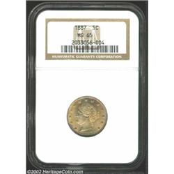 1887 5C MS65 NGC. A lustrous, well-struck Gem with rich golden-brown toning that blankets the obvers