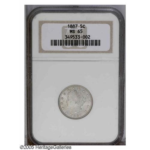 1887 5C MS65 NGC. A thin veneer of warm grayish-blue c 1887[5C] MS65 NGC.