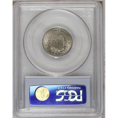 1887 5C MS65 PCGS. Lustrous with olive-green and blue-