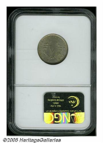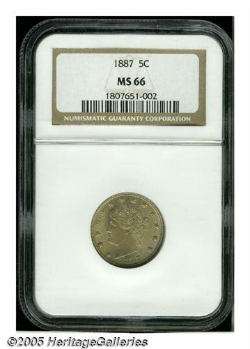 <B>1887<5C> MS66 NGC.</B></I> Deep tangerine surfaces, appealing surfaces, matte luster. A minute mark above the 7 in the date is noted for accuracy. As of (6/05) none have been graded higher by either NGC or PCGS. Population: 16 in 66, 0 finer (6/05).